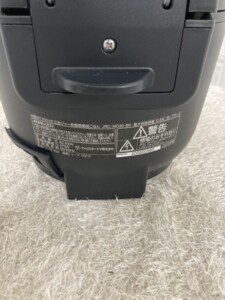 わずかに調理時の蒸気や使用による軽い汚れの付着が見られましたが、これは乾拭きや洗剤を使って簡単に落とせる程度で、全体として非常に清潔感のある一台でした。内部も確認させていただきましたが、内釜のコーティング剥がれや大きな焦げ跡もなく、しっかりと洗浄されていたことがわかります。
