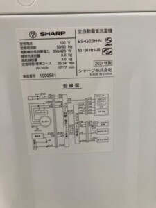 SHARP(シャープ)6.0キロ 全自動洗濯機 ES-GE6H-N 2024年製