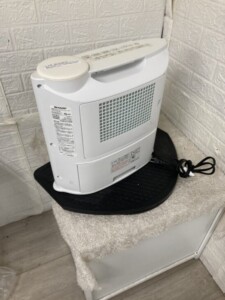 お品物は使用感こそあるものの、外観には目立った傷やへこみはなく、全体的に丁寧に使われていた印象を受けました。内部のファン部分に若干の埃はありましたが、加湿・温風の動作は良好で問題なく機能していることを確認しました。リモコンなどの付属品は欠品していましたが、製品本体の状態はまずまずで、まだまだ中古市場で需要のあるモデルです。