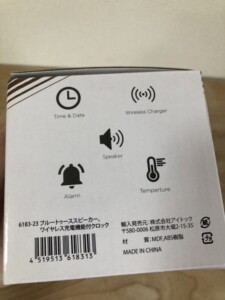 | 製品名 | ブルートゥーススピーカー ワイヤレス充電機能付クロック |