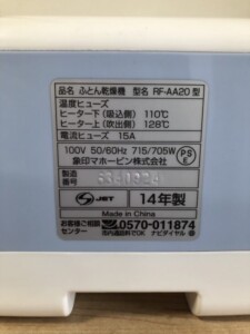 栃木県大田原市浅香へ出張買取 ZOJIRUSHI ふとん乾燥機 RF-AA20 2014年製 年式古めのため無料引取に