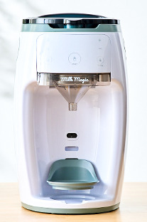 「milkmagic(ミルクマジック)」は、粉ミルクと水をセットするだけで自動的にミルクを調乳することができる 日本初の自動ミルク調乳機です。人肌温度から最大70℃まで対応し、厚生労働省・WHOの調乳ガイドラインに準拠した 高温調乳機能を備えています。忙しい育児シーンでも手軽に調乳ができるため、時短育児アイテムとして人気です。