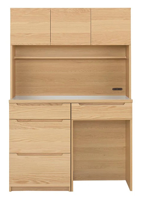 unico(ウニコ)のキッチンボードシリーズの一つで、 木目の美しさを活かしたシンプルなデザインが特徴の収納家具です。本体は温かみのある ナチュラルな風合いに仕上げられており、キッチン周りの収納に適した機能性を備えています。
