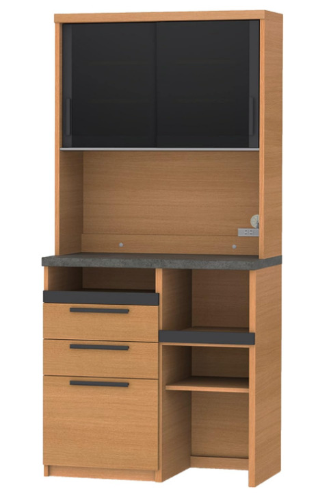 パモウナの「SY 食器棚」は、家電やキッチンツール、ストック食品などで物が増えがちなキッチンスペースを、効率よく“見た目もすっきり”整えられるキッチンボードです。キッチンボードにユーティリティスペースを設けることで、よく使うものをサッと出し入れでき、作業スペースを広く確保しやすい設計になっています。