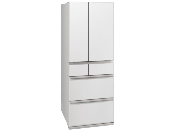 三菱電機の冷凍冷蔵庫「MR-WZ61M(WZシリーズ)」は、幅68.5cmの設置しやすいサイズで、たっぷり大容量608Lを実現したフレンチドア(観音開き)タイプの冷蔵庫です。冷凍室が“真ん中”レイアウトのため、冷凍食品や作り置きの出し入れがしやすく、日々の調理動線をスムーズにします。