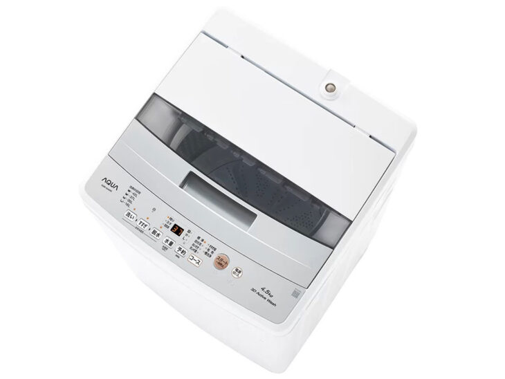 AQUA(アクア)の「AQW-S4A」は、洗濯・脱水容量4.5kgの全自動洗濯機(コンパクトモデル)です。省スペースに置きやすいボディ幅480mmで、限られた設置場所でも使いやすいのが特長です。