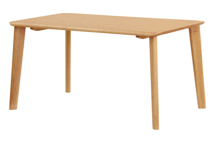浜本工芸のダイニングテーブル「DT-3500」は、妻手(短辺)と長手(長辺)で異なる角度に仕上げた天縁が特徴のモデルです。見る角度や光の当たり方によって表情が変わり、手仕事ならではの温もりを感じられるデザインにまとめられています。やや鋭角にすっと伸びる脚のラインは空間を引き締め、ダイニングをすっきりとした印象に整えます。