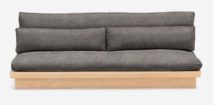 フレームにはオーク無垢材を使用しており、背面から見ても美しく仕上げられているのが特長。フレームにシートクッションを置いたシンプルな形状のため、日常のお手入れやメンテナンスがしやすい点も嬉しいポイントです。