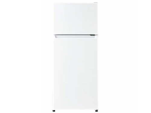 HaierのJR-12Aは、定格内容積120Lを備えた2ドア冷凍冷蔵庫です。幅452mmのスリムボディを採用しており、ワンルームや省スペースのキッチンにもすっきり設置しやすいのが特長です。冷蔵室は91Lのひろびろ設計で、日常使いの食品や飲み物をしっかり収納できます。さらに、3つのドアポケットや上からも正面からも中身が見やすいフリーケースを備えており、野菜や小物類も整理しやすい仕様です。冷凍室には仕切り棚があり、冷凍食品も整理整頓しやすく、耐熱100℃・耐荷重30kgの耐熱性能天板で電子レンジも置きやすいモデルです。