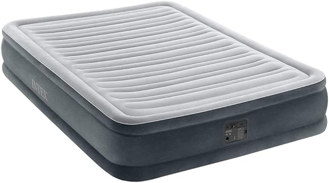INTEX コンフォートプラッシュ ミッドライズ エアーベッド ダブル 67767JBは、来客用や簡易ベッド、防災備蓄用として使いやすいダブルサイズのエアーベッドです。ベッド内部には高強度ポリエステル繊維を使用した構造を採用しており、体の凹凸に沿うように支えながら体圧を分散し、快適な寝心地をサポートします。