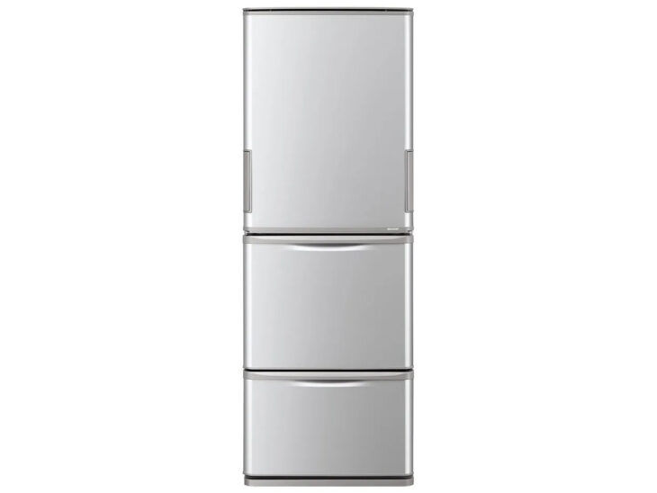 SHARP(シャープ)のSJ-W358Kは、定格内容積350Lの3ドア冷蔵庫です。高さを約169cmに抑えた設計で、最上段まで手が届きやすく、日常の食品の出し入れがしやすいモデルです。