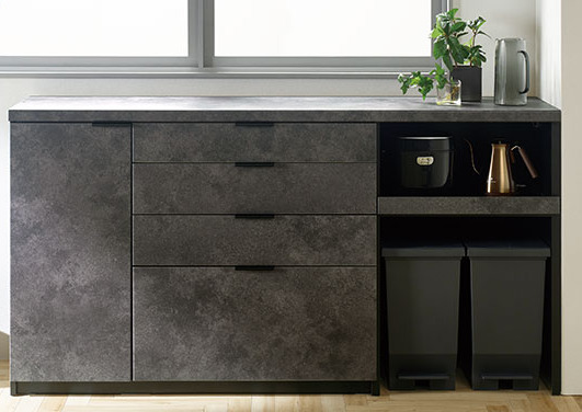 パモウナのRUシリーズに属するキッチンカウンター(幅160cm・奥行44.5cmタイプ)は、シンプルで洗練されたデザインと高い機能性を兼ね備えた収納家具です。広々とした天板スペースにより調理や家電設置がしやすく、日常使いに適した設計となっています。無駄のないフラットな外観は空間に自然に溶け込み、モダンなインテリアにも調和します。また、収納部は使いやすさを重視した設計で、食器や調理器具、ストック品などを効率よく整理できる点が特徴です。国内ブランドならではの品質の高さと安定感もあり、長く安心して使用できるキッチン収納です。