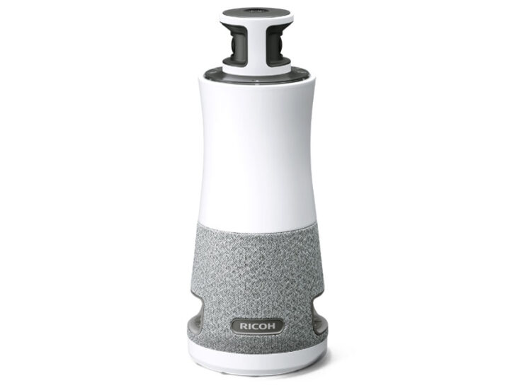 また、上部の360度カメラで捉えた映像をリコーの画像処理技術で自動分割し、自動露出補正を行うことで、参加者全員の表情を見やすく表示できます。さらに、360度マイクと360度スピーカーを搭載し、全方位からの音声を集音しながら、クリアで聞き取りやすい音声環境を提供します。2台連結にも対応しているため、より広い会議室でも柔軟に活用できる高性能モデルです。
